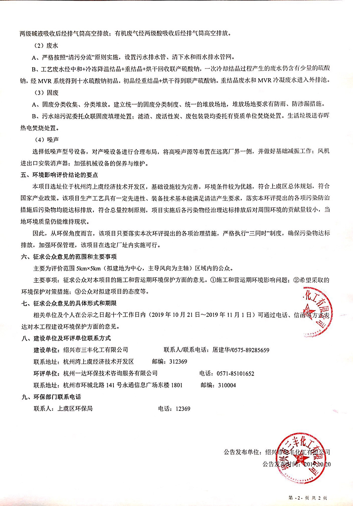紹興市三豐化工有限公司環(huán)境影響報告書公示