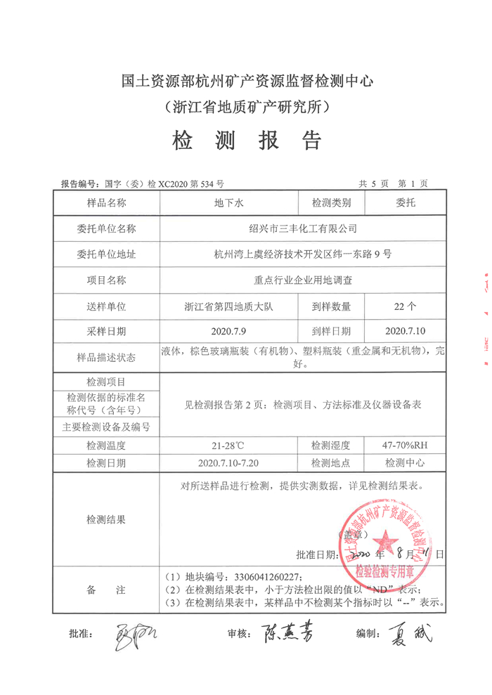 上一篇:紹興市三豐化工有限公司土壤檢測報告公示